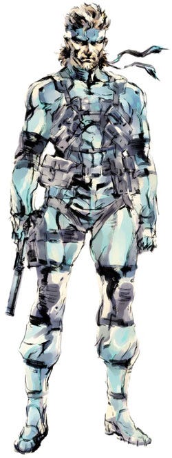 At Kyoto Seika, my classmates were very much aware that creating popular characters was a crucial part of the manga-making process, and, as you can imagine, skilled character designers in Japan are highly valued. There are artists like Kosuke Fujishima of the Tales of series of RPGs and Metal Gear's Yoji Shinkawa (a Kyoto Seika alumnus whose iconic art is seen to the left), who have achieved great fame and recognition thanks in large part to their work designing characters. Artists such as these have their work featured in exhibitions, and can sell expensive art books of their sketches and designs.